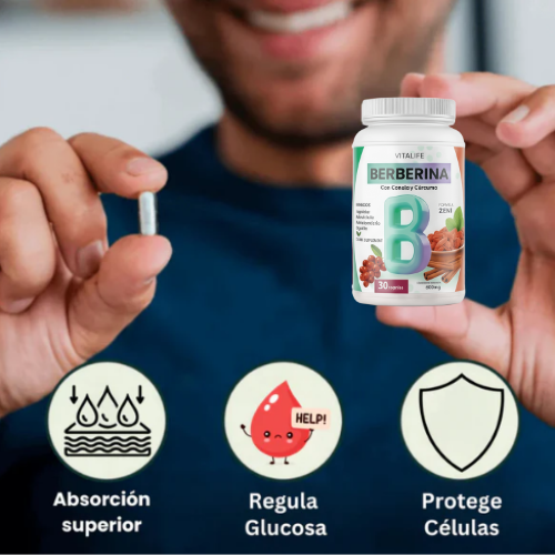 La berberina ayuda a que el cuerpo utilice mejor la glucosa como fuente de energía y reduce la acumulación de azúcares en sangre.